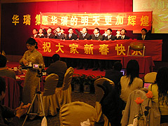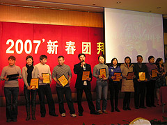 華夏歡唱四海正逢盛世春,瑞雪紛飛九州已兆豐收景”,在“金豬送?!钡淖8B曋屑瘓F各單位員工歡聚一堂,共同回顧2006暢想2007。會場上歡聲笑語,文藝節(jié)目精彩紛呈,抽獎環(huán)節(jié)激動人心。董事長為在集團工作十年以上的老員工頒發(fā)“十年特殊貢獻獎”,更讓大家體會到華瑞以人為本的文化特色,體會到集團董事會對員工無微不致地關(guān)懷。